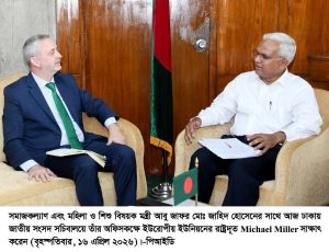 সাক্ষাৎকালে উভয় পক্ষ বাংলাদেশে সামাজিক সুরক্ষা ব্যবস্থার উন্নয়ন, নারী কর্মীদের অধিকার ও ক্ষমতায়ন, শিশু শ্রম নিরসন, দক্ষতা উন্নয়ন এবং সামাজিক নিরাপত্তা কর্মসূচির সাথে আন্তর্জাতিক মানদণ্ডের সমন্বয় নিয়ে বিস্তারিত আলোচনা করেন। মন্ত্রী অধ্যাপক ডাঃ এজেডএম জাহিদ হোসেন বলেন, বর্তমান সরকার প্রধানমন্ত্রী তারেক রহমানের নেতৃত্বে সমাজকল্যাণ মন্ত্রণালয় এবং মহিলা ও শিশু বিষয়ক মন্ত্রণালয় দেশের প্রান্তিক পর্যায়ে দেশের দরিদ্র ও অসহায় জনগোষ্ঠী, নারী ও শিশুদের উন্নয়নে ব্যাপক কর্মসূচি বাস্তবায়ন করছে। তিনি আইএলও-এর সাথে যৌথভাবে কাজ করে সামাজিক সুরক্ষা কর্মসূচিকে আরও কার্যকর ও অন্তর্ভুক্তিমূলক করার আশা প্রকাশ করেন। তিনি বলেন, বিশেষ করে শিশুদের জন্য চাইল্ড কেয়ার সেন্টার, ডে- কেয়ার সেন্টার স্থাপন বৃদ্ধির জন্য পরিকল্পনা হাতে নেওয়া হয়েছে। নারীদের ও শিশুর উন্নয়ন, নারী ও শিশু অধিকার সুরক্ষা এবং দক্ষতার উন্নয়নে কেয়ারগিভার, ভাষা শিক্ষা, বিভিন্ন দক্ষতা উন্নয়নে প্রশিক্ষণ কর্মসূচিতে আইএলও-এর প্রযুক্তিগত সহায়তা কামনা করেন তিনি। মাননীয় মন্ত্রী বেকারত্ব নিরসন এবং কর্মক্ষেত্রে নারীর অংশগ্রহণ সম্প্রসারণে আইএলও-র সঙ্গে সহযোগিতা আরও গভীর করার ব্যাপারে আগ্রহ প্রকাশ করেন। তিনি সহিংসতা ও হয়রানিমুক্ত কর্মক্ষেত্র নিশ্চিত করা, শহরাঞ্চল ও দেশের ৬৪টি জেলায় শিশু পরিচর্যা পরিষেবা সম্প্রসারণ করা, জাতীয় দক্ষতা উন্নয়ন কর্তৃপক্ষের সঙ্গে সমন্বয় করে দক্ষ পরিচর্যাকারীদের একটি সনদপ্রাপ্ত ক্যাডার তৈরি করা, নারী পরিচর্যাকারীদের জন্য বিদেশে কর্মসংস্থানের সুযোগ বৃদ্ধি করা এবং বাংলাদেশে শিশুশ্রম নির্মূলের প্রচেষ্টা ত্বরান্বিত করাসহ বিভিন্ন অগ্রাধিকারমূলক বিষয়ের ওপর জোর দেন।