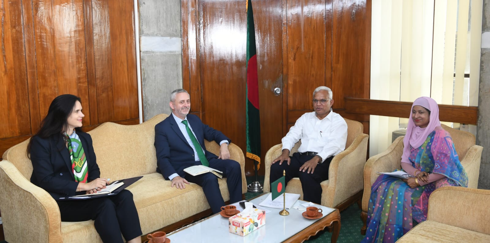 আইএলও কান্ট্রি ডিরেক্টর ম্যাক্স টুনন বৈঠক চলাকালে মন্ত্রীকে ধন্যবাদ জানিয়ে বলেন, আইএলও কাঠামোগত বাধা দূরীকরণ এবং অন্তর্ভুক্তিমূলক দক্ষতা প্রশিক্ষণ ও কর্মসংস্থানের পথ তৈরির লক্ষ্যে ‘জেন্ডার অ্যান্ড স্কিলস টাস্কফোর্স’ এবং ‘জেন্ডার অ্যান্ড স্কিলস অ্যাকশন প্ল্যান’-এর মতো উদ্যোগের মাধ্যমে নারী শ্রমশক্তিতে অংশগ্রহণ বৃদ্ধিতে তাদের চলমান সমর্থনের কথা তুলে ধরেন। আইএলও একটি সর্বাত্মক সরকারি ও সর্বাত্মক সামাজিক পদ্ধতির মাধ্যমে সার্বজনীন, সাশ্রয়ী এবং মানসম্মত শিশু যত্ন ব্যবস্থা প্রতিষ্ঠার লক্ষ্যে গুরুত্বপূর্ণ মাইলফলক হিসেবে ‘জাতীয় শিশু যত্ন রোডম্যাপ’ এবং ‘শিশু যত্নের জন্য জাতীয় ন্যূনতম মান’ প্রণয়নে মহিলা ও শিশু বিষয়ক মন্ত্রণালয়কে (এমওডব্লিউসিএ) প্রদত্ত কারিগরি সহায়তার ওপরও জোর দেয়। কান্ট্রি ডিরেক্টর ম্যাক্স টুনন বলেন , বাংলাদেশ সরকারের সামাজিক সুরক্ষা ও নারী-শিশু উন্নয়ন উদ্যোগগুলো প্রশংসনীয়। তিনি জানান, আইএলও বাংলাদেশে শ্রম অধিকার, লিঙ্গ সমতা এবং টেকসই কর্মসংস্থান সৃষ্টিতে সরকারের সাথে ঘনিষ্ঠভাবে কাজ করতে প্রস্তুত। আলোচনায় সামাজিক সুরক্ষা কর্মসূচির যেমন: ফ্যামিলি কার্ড, বয়স্ক ভাতা, বিধবা ভাতার সাথে আইএলও-এর বিভিন্ন প্রকল্পের সমন্বয়, শিশু শ্রম নিরসন এবং নারী কর্মীদের জন্য নিরাপদ কর্মপরিবেশ নিশ্চিত করার বিষয়গুলো গুরুত্ব পায়। সাক্ষাৎকালে মহিলা ও শিশু বিষয়ক মন্ত্রণালয়ের সচিব ইয়াসমীন পারভীন এনডিসি, মন্ত্রণালয়ের ঊর্ধ্বতন কর্মকর্তা এবং আইএলও প্রতিনিধিদলের সদস্যরা উপস্থিত ছিলেন। উভয় পক্ষ ভবিষ্যতে আরও ঘনিষ্ঠ সহযোগিতার মাধ্যমে বাংলাদেশের সামাজিক উন্নয়ন, শিশু সুরক্ষা এবং দক্ষ কেয়ার গিভার প্রস্তুতিতে কর্মসূচি প্রকল্পে আর্থিক সাহায্য (গ্রান্ট) ত্বরান্বিত করার অঙ্গীকার ব্যক্ত করেন।