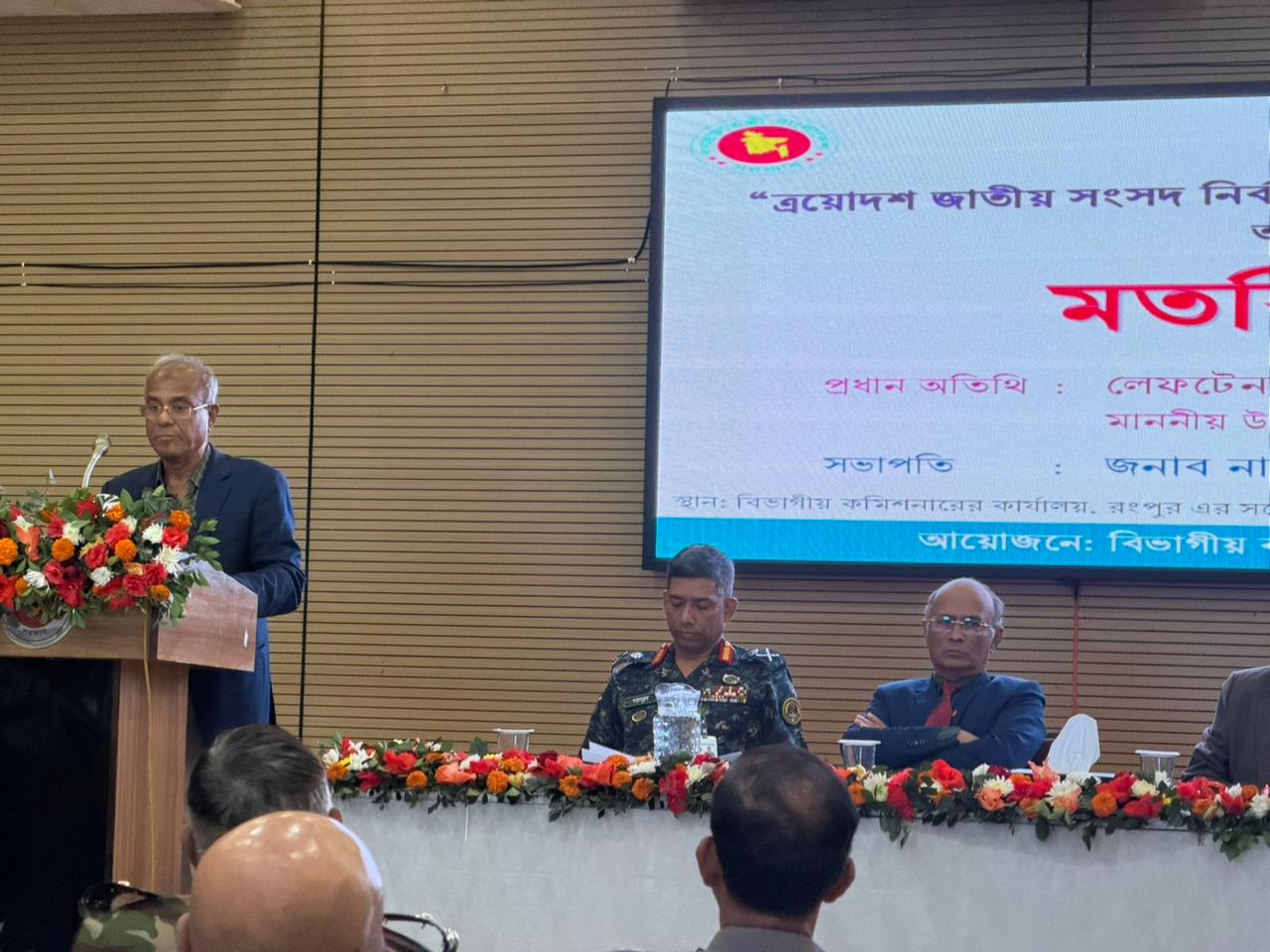 উপদেষ্টা আজ দুপুরে রংপুর বিভাগীয় কমিশনারের কার্যালয়ের সম্মেলন কক্ষে ‘ত্রয়োদশ জাতীয় সংসদ নির্বাচন ও গণভোট-২০২৬’ সুষ্ঠুভাবে সম্পাদনের লক্ষ্যে রংপুর বিভাগীয় প্রশাসন আয়োজিত আইনশৃঙ্খলা বিষয়ক মতবিনিময় সভায় প্রধান অতিথির বক্তব্যে এ নির্দেশ দেন।