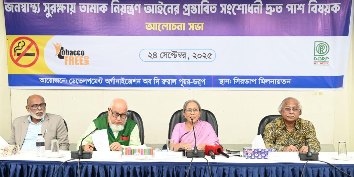 উপদেষ্টা আজ আজ বিকেলে সিরডাপ মিলনায়তনে ডেভেলপমেন্ট অর্গানাইজেশন অব দ্য রুরাল পুওর (ডর্প) আয়োজিত “জনস্বাস্থ্য সুরক্ষায় তামাক নিয়ন্ত্রণ আইনের প্রস্তাবিত সংশোধনী দ্রুত পাশ” -শীর্ষক আলোচনা সভায় প্রধান অতিথির বক্তব্যে এসব কথা বলেন।