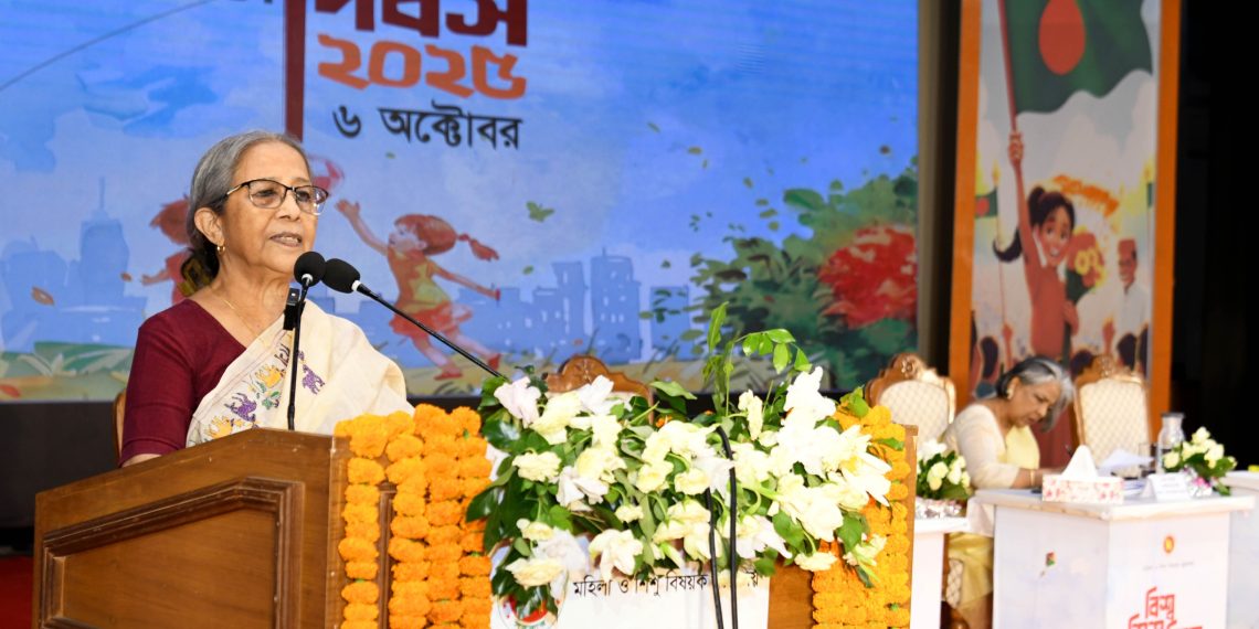 উপদেষ্টা বলেন, বিশ্ব শিশু দিবস এবং শিশু অধিকার সপ্তাহ ২০২৫ উদযাপন উপলক্ষে আমরা একত্রিত হয়েছি বিশেষ একটি উদ্দেশ্যে- আর তাহলো শিশুদের মুখে হাসি, তাদের স্বপ্নের অনুপ্রেরণা, জীবনের মর্যাদা ও নিরাপত্তাই এ দিবসে মূল বিষয়।