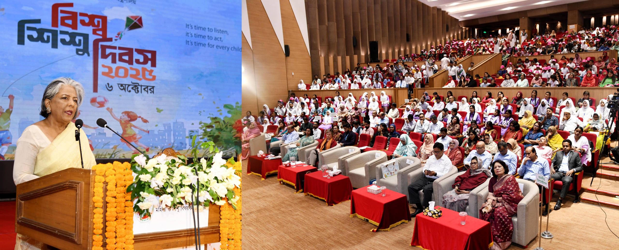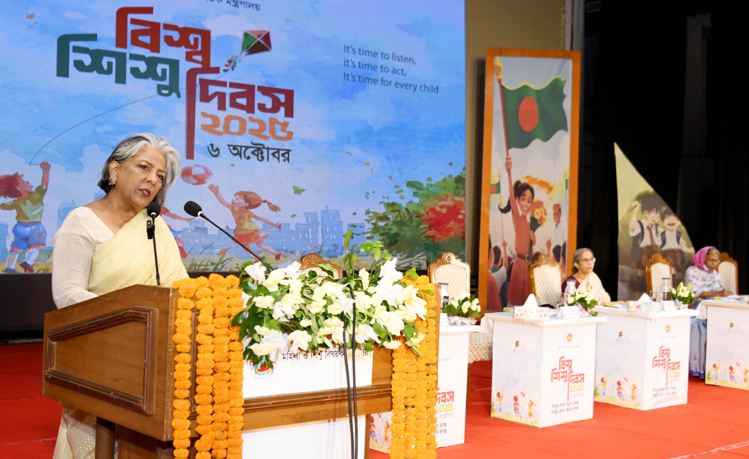উপদেষ্টা শারমীন এস মুরশিদ বলেন, ১৯৫৪ সালে জাতিসংঘের UNICEF- ই প্রথম বিশ্ব শিশু দিবস শুরু করেছিল। শিশুদের কল্যাণ ও অধিকার সুরক্ষার জন্য বিশ্বব্যাপী সচেতনতা বৃদ্ধির উদ্দেশ্যে। এ সময় বিশ্বজুড়ে শিশুদের প্রতি ভ্রাতৃত্ব, নিরাপত্তা ও উন্নয়নের গুরুত্ব ফুটে ওঠে। ১৯ ৮৯ সালে জাতিসংঘ শিশু অধিকার সনদ (UNCRC) চারটি মূল অধিকার নির্ধারণ করে- বেঁচে থাকার অধিকার, বিকাশের অধিকার, সুরক্ষার অধিকার এবং অংশগ্রহণের অধিকার। যদিও বাংলাদেশের সংবিধান ও বিভিন্ন আইন সেগুলো নিশ্চিত করে। বাস্তবতা হলো অনেক দিকেই এসব এখনো পিছিয়ে রয়েছে। আমরা তা নিরসনে পরিশ্রম করে যাচ্ছি।