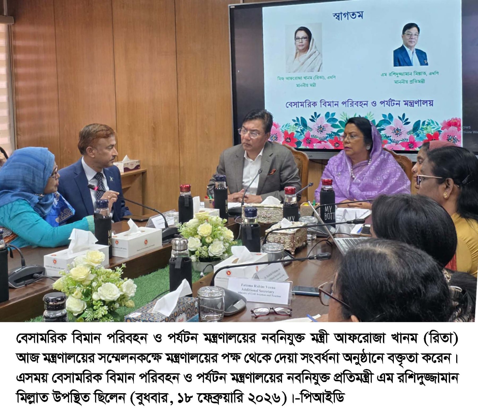 বেসামরিক বিমান পরিবহন ও পর্যটন মন্ত্রণালয়ে যোগদান করেছেন নবনিযুক্ত মন্ত্রী আফরোজা খানম (রিতা) এবং প্রতিমন্ত্রী এম রশিদুজ্জামান মিল্লাত।