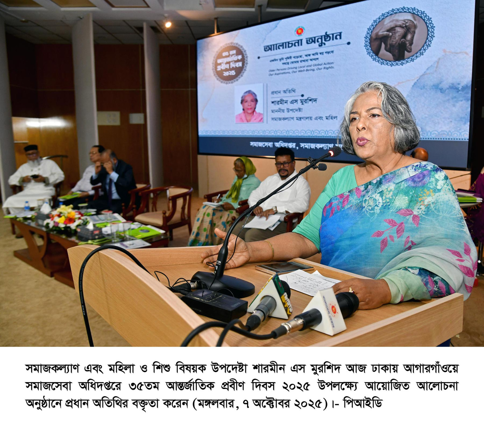 প্রবীণদের জন্য কমিউনিটি ভিত্তিক কেয়ার ব্যবস্থা গড়ে তুলতে হবে_উপদেষ্টা শারমীন এস মুরশিদ