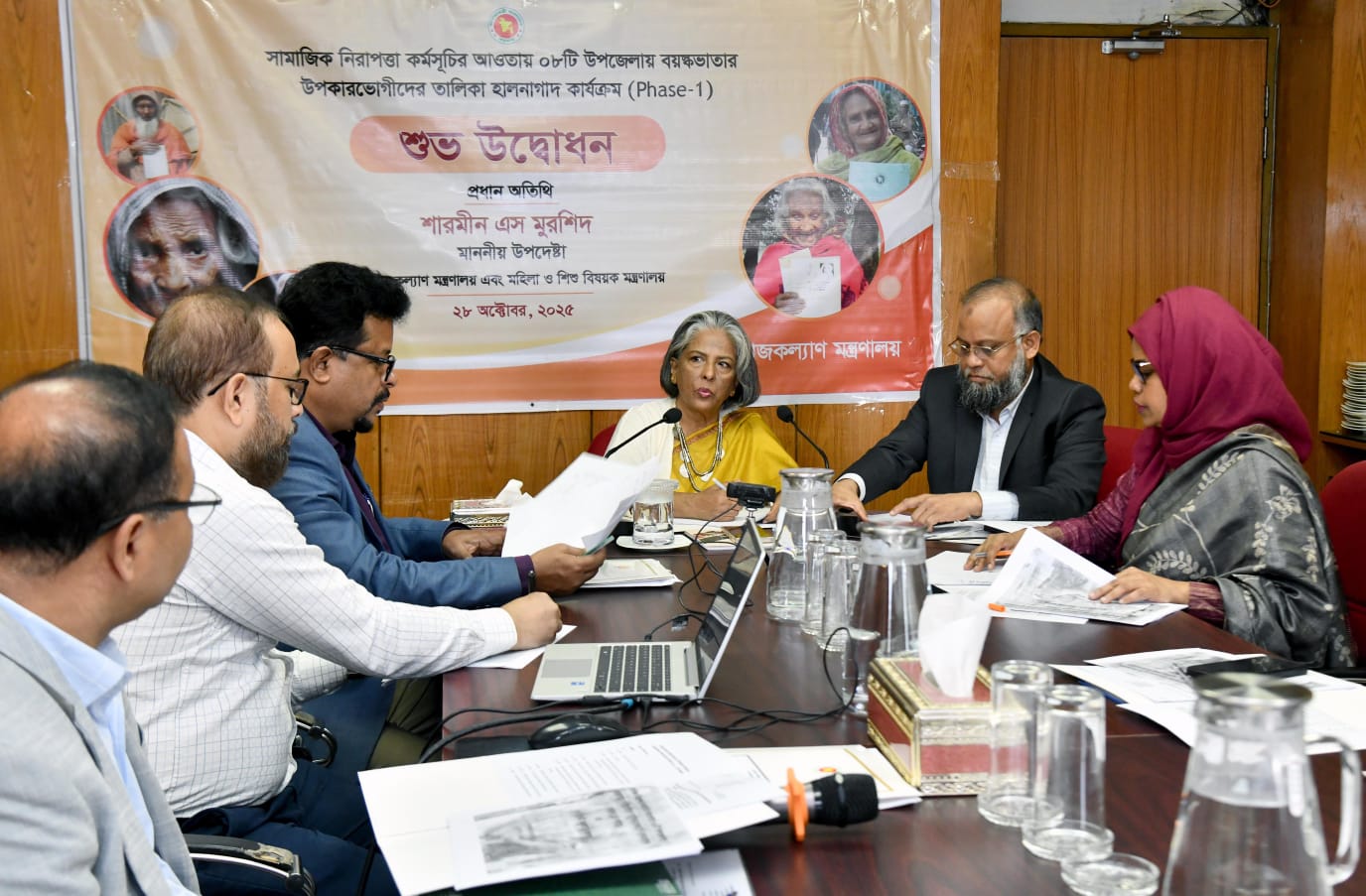 সমাজকল্যাণ এবং মহিলা ও শিশু বিষয়ক মন্ত্রণালয়ের উপদেষ্টা শারমীন এস মুরশিদ বলেছেন, সমাজকল্যাণ মন্ত্রণালয়াধীন সামাজিক নিরাপত্তা কর্মসূচির আওতাভুক্ত বয়স্ক ভাতার সুবিধাভোগীদের তালিকা স্বচ্ছতার ভিত্তিতে টেকনোলজির মাধ্যমে প্রকৃত উপকারভোগীদের একটি সঠিক তালিকা এই প্রথম তৈরি করতে উদ্যোগ নিয়েছি । যাচাই-বাছাই করে প্রকৃত উপকারভোগীদের মধ্যে ভাতা প্রাপ্তদের জন্য অন্তর্বর্তীকালীন সরকারের এটি হবে একটি মাইলফলক পদক্ষেপ। বয়স্ক ভাতা প্রদানে প্রযুক্তি নির্ভর ডাটাবেজ তৈরির উদ্যোগ অন্তবর্তী সরকারের জন্য একটি মাইলফলক উল্লেখ করে তিনি বলেন, সমাজকল্যাণ মন্ত্রণালয়কে একটি অনন্য মডেল হিসেবে দাঁড় করাতে চাই।
