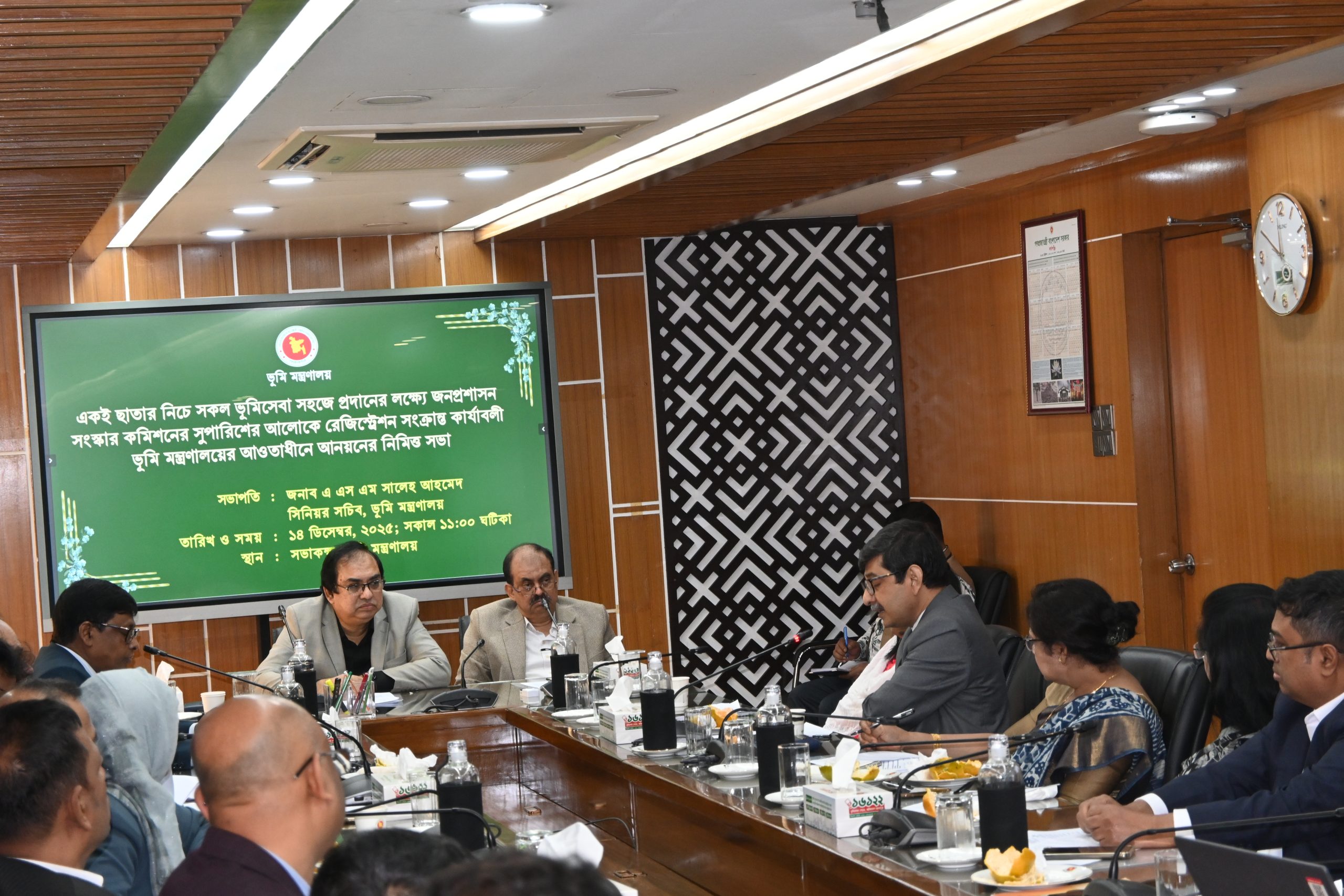 ভূমি নিবন্ধন ভূমি মন্ত্রণালয়ের অধীনে হওয়া উচিত, ভূমি মন্ত্রণালয়ের সিনিয়র সচিব এএসএম সালেহ আহমেদ বলেছেন। জনপ্রশাসন সংস্কার কমিশনের সুপারিশের আলোকে সহজ ভূমি পরিষেবা প্রদানের জন্য নিবন্ধন-সম্পর্কিত কার্যাবলী ভূমি মন্ত্রণালয়ের আওতায় আনার লক্ষ্যে আজ ভূমি মন্ত্রণালয়ের সভাকক্ষে আয়োজিত এক সভায় তিনি এসব কথা বলেন।