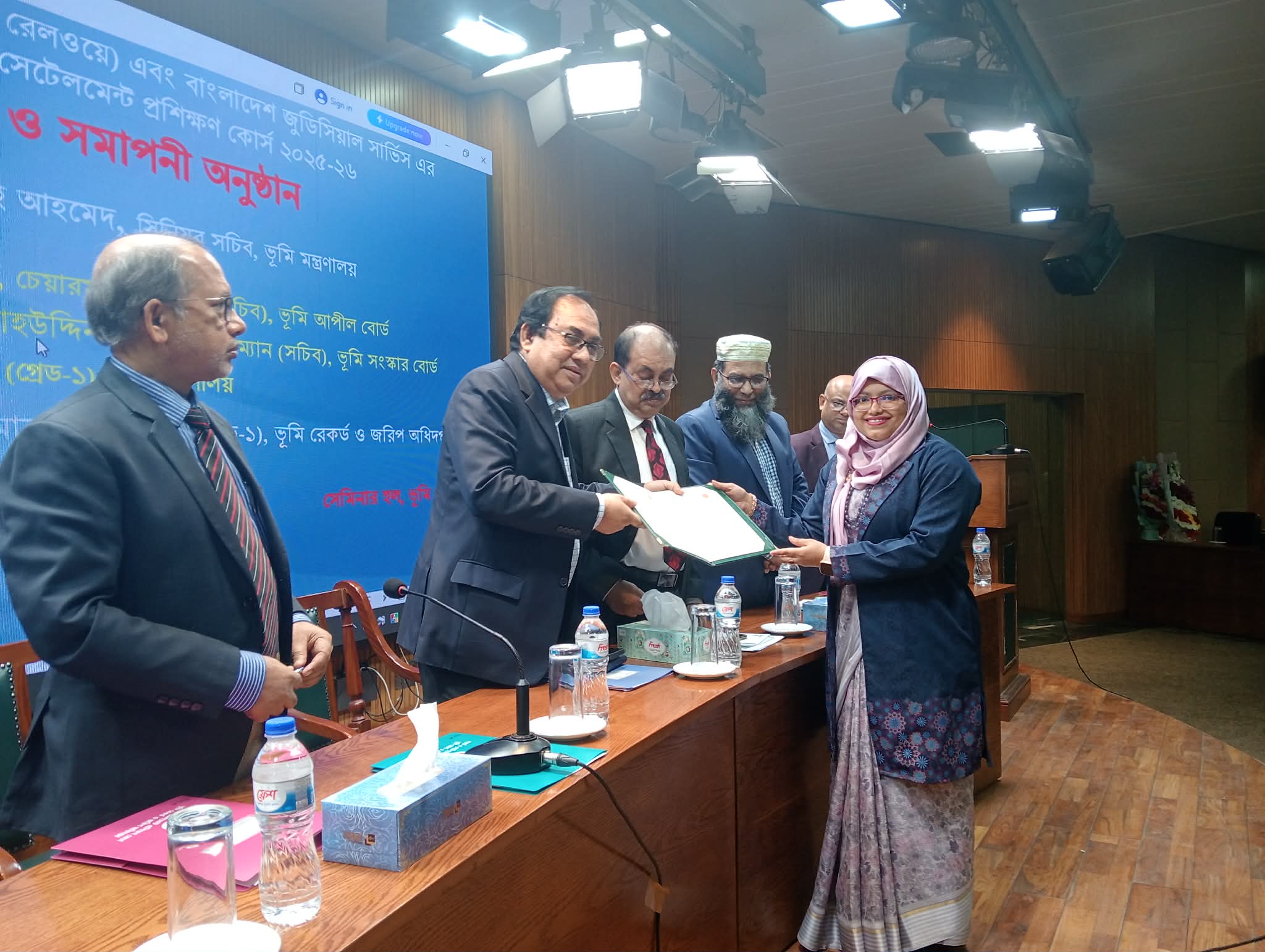 আজ রাজধানীর ভূমি ভবনের কেন্দ্রীয় সিমেনার হলে ১৪১তম ‘সার্ভে ও সেটেলমেন্ট প্রশিক্ষণ কোর্সে’র সনদপত্র বিতরণ ও সমাপনী অনুষ্ঠানে তিনি এসব কথা বলেন। ৫২ দিন ব্যাপি প্রশিক্ষণে বিসিএস ক্যাডারভুক্ত (প্রশাসন,পুলিশ,বন ও রেলওয়ে) এবং বাংলাদেশ জুডিসিয়াল সার্ভিস এর ৬০ জন কর্মকর্তা অংশগ্রহণ করেন। ভূমি রেকর্ড ও জরিপ অধিদপ্তর