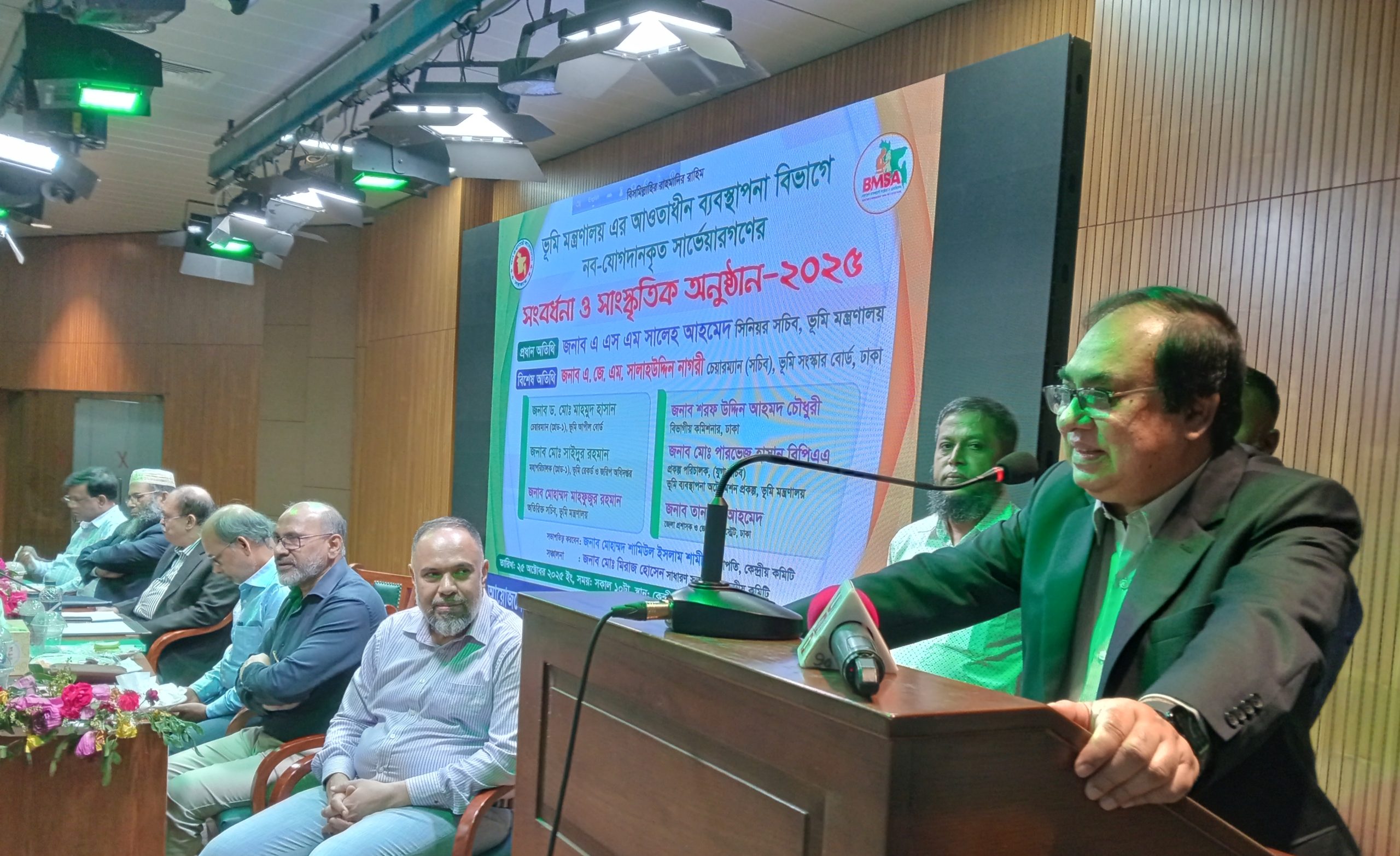 আজ(শনিবার) রাজধানীর ভূমি ভবনের সম্মেলনকক্ষে ‘ভূমি মন্ত্রণালয় এর আওতাধীন ব্যবস্থাপনা বিভাগে নবযোদানকৃত সার্ভেয়ারগণের সংবর্ধনা ও সাংস্কৃতিক অনুষ্ঠান-২০২৫ এর প্রধান অতিথির বক্তব্যে তিনি এসব কথা বলেন। মোট ২০৫ জন সার্ভেয়ার নিয়োগ দেয়া হয়েছে এর মধ্যে ১৯৬ জন যোগদান করেছে। অনুষ্ঠানের আয়োজন করেন বাংলাদেশ ম্যানেজমেন্ট সার্ভেয়ার’স এসোসিয়েশন।