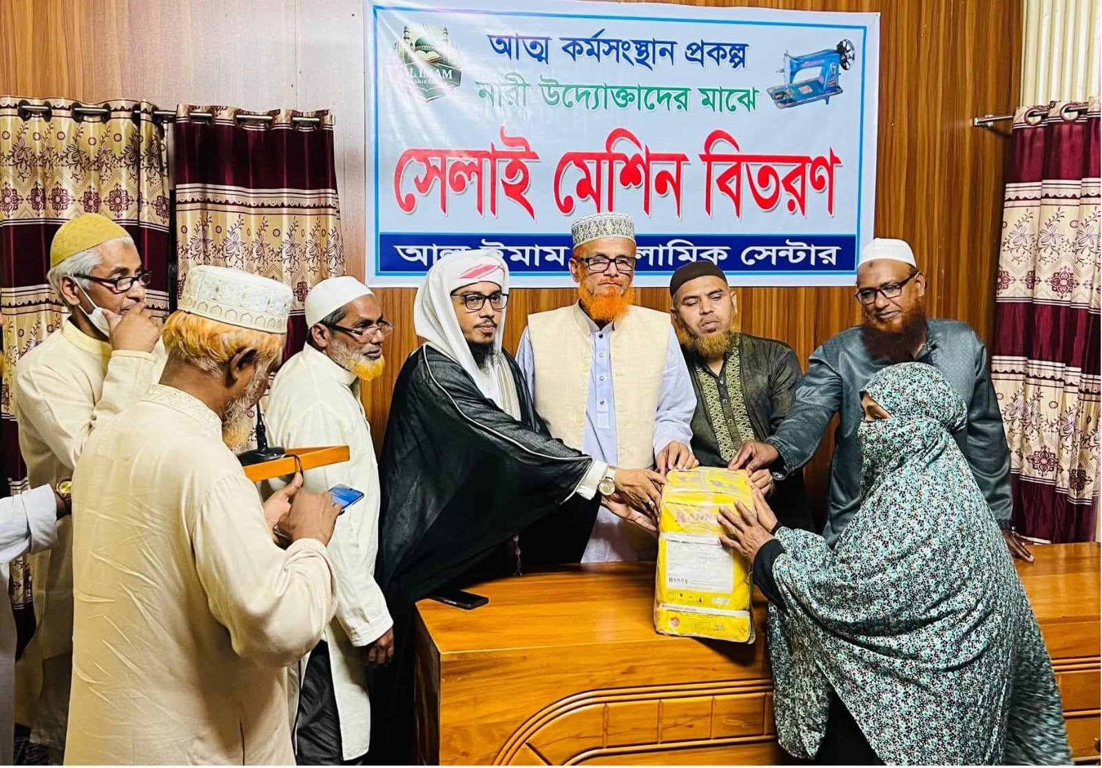 শুক্রবার দুপুরে আল ইমাম ইসলামিক সেন্টারের উদ্যোগে এই সেলাই মেশিন বিতরণ করা হয়। এ উপলক্ষে পৌর এলাকার বাওয়ার কুমারজানীতে ‘‘আল ইমাম ইসলামিক সেন্টারে’’ আলোচনা সভার আয়োজন করা হয়।