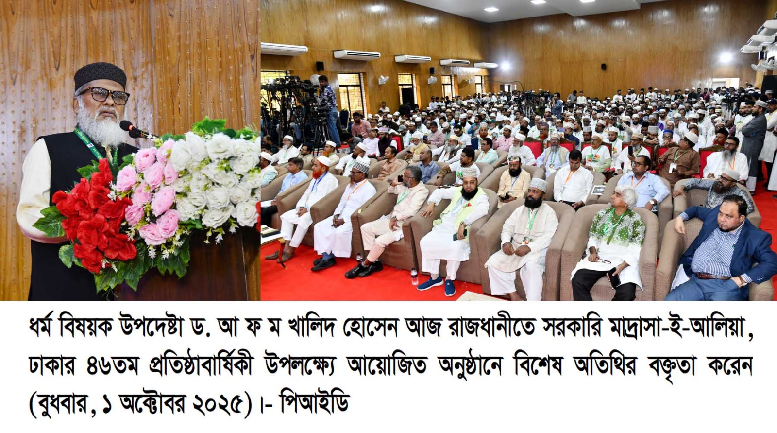 বিলাল হুসাইন :ঢাকা, বুধবার( ১ অক্টোবর ২০২৫):ধর্ম উপদেষ্টা ড. আ ফ ম খালিদ হোসেন বলেছেন,সরকারি মাদ্রাসা-ই-আলিয়া একটি ঐতিহ্যের স্মারক। এটি কেবল একটি শিক্ষা প্রতিষ্ঠান নয়, বরং উপমহাদেশের মুসলিম সমাজের শিক্ষা, সংস্কৃতি, সমাজ সংস্কার ও জাতীয় জাগরণের ইতিহাসের এক উজ্জ্বল অধ্যায়।