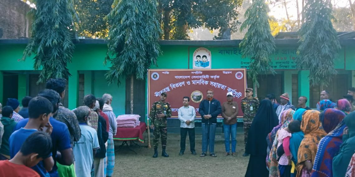 রোজ মঙ্গলবার, ০৬ জানুয়ারি-২০২৬ ইং তারিখ সাজেক ইউনিয়নে ০৪ নং ওয়ার্ডের বিভিন্ন গ্রামের হত দরিদ্র ও দুস্থ পাহাড়ী ও বাঙালি পরিবারের মাঝে একশত শীতবস্ত্র বিতরণ করেছেন,বাঘাইহাট জোনের,জোন কমান্ডারের তত্ত্বাবধানে,উপ-অধিনায়ক মেজর মোঃ সালমান সিদ্দিক পিএসসি,১৪ ই বেঙ্গল, বাঘাইহাট জোন এর উপস্থিতিতে,বাঘাইহাট সরকারি প্রাথমিক বিদ্যালয় মাঠে ৬নং আদর্শ পাড়া, কিয়াংঘাট, সেগুন বাগান, আনসার টিলা ও পার্শ্ববর্তী এলাকার একশত স্থানীয় পাহাড়ি ও বাঙ্গালি জনসাধারণের মাঝে শীতবস্ত্র কম্বল এবং শীতের পোশাক বিতরণ করেছে সেনাবাহিনীর বাঘাইহাট জোন।