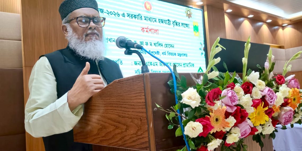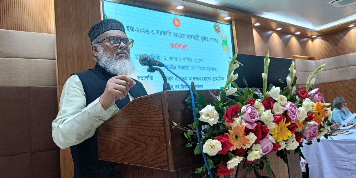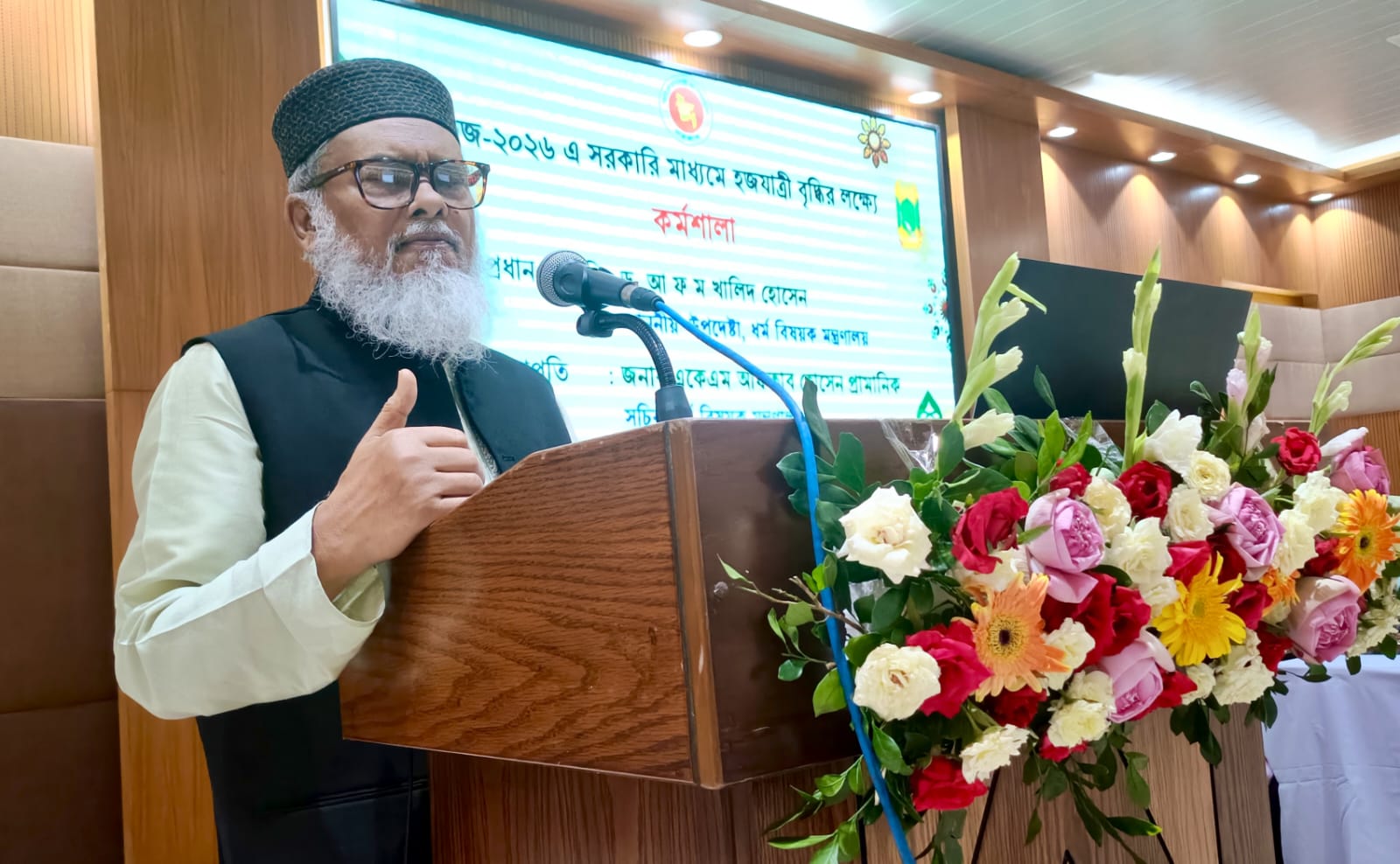 আজ সকালে রাজধানীর আশকোনায় ঢাকা হজ অফিসের সম্মেলন কক্ষে হজ ২০২৬ এ সরকারি মাধ্যমে হজযাত্রী বৃদ্ধির লক্ষ্যে অনুষ্ঠিত কর্মশালায় তিনি এসব কথা বলেন।