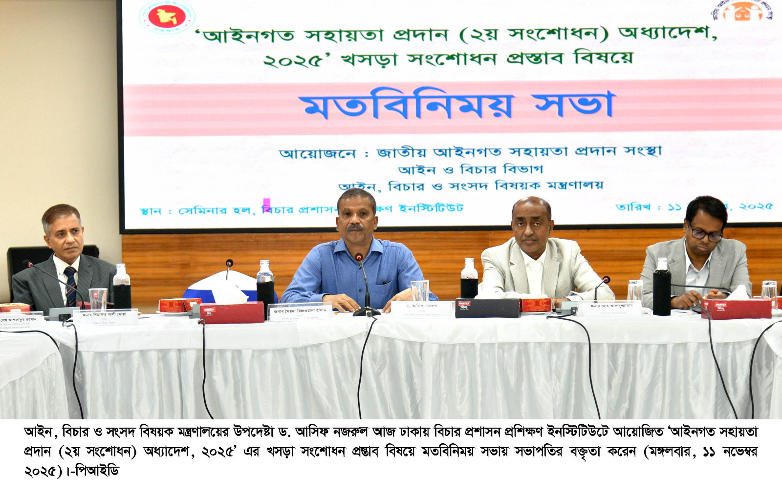 মতবিনিময় সভায় জাতীয় আইনগত সহায়তা প্রদান সংস্থার পক্ষ থেকে আইনগত সহায়তা প্রদান (দ্বিতীয় সংশোধন) অধ্যাদেশ, ২০২৫-এর খসড়া উপস্থাপন করা হয়। বিচার বিভাগ সংস্কার কমিশন ও জাতীয় ঐকমত্য কমিশনের সুপারিশ এবং জুলাই সনদে জাতীয় আইনগত সহায়তা প্রদান সংস্থাকে অধিদফতরে রূপান্তরের ওপর গুরুত্ব আরোপ করার প্রেক্ষিতে প্রস্তাবিত সংশোধনীতে সংস্থারটির কার্যপরিধি সম্প্রসারণ এবং আইনগত সহায়তা কার্যক্রমকে আরো শক্তিশালী করার লক্ষ্যে সংস্থাটিকে অধিদফতরে রূপান্তরের প্রস্তাব করা হয়েছে। এতে অধিদফতরের দায়িত্ব ও কার্যাবলি, আইনগত সহায়তা উপদেষ্টা পরিষদ গঠন, মহানগর কমিটি গঠন, বেসরকারি সংস্থার কর্মক্ষেত্র নির্ধারণ এবং মধ্যস্থতাকারীদের জন্য অ্যাক্রেডিটেশন সার্টিফিকেট প্রদানসহ বিভিন্ন বিষয়ে প্রস্তাব অন্তর্ভুক্ত রয়েছে।